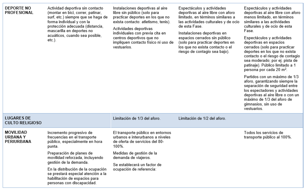 PREVISIÓN ORIENTATIVA PARA EL LEVANTAMIENTO DE LAS LIMITACIONES DE ÁMBITO NACIONAL ESTABLECIDAS EN EL ESTADO DE ALARMA, EN FUNCIÓN DE LAS FASES DE TRANSICIÓN A UNA NUEVA NORMALIDAD